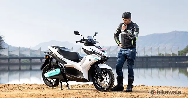 Coming to the handling and ride quality. The Aerox E is quite fun thanks to its agile and nimble nature, similar to the Aerox 155. It feels light on its feet and tips into corners effortlessly. The tyres also offer good grip and feedback, and inspire confidence for sporty riding.