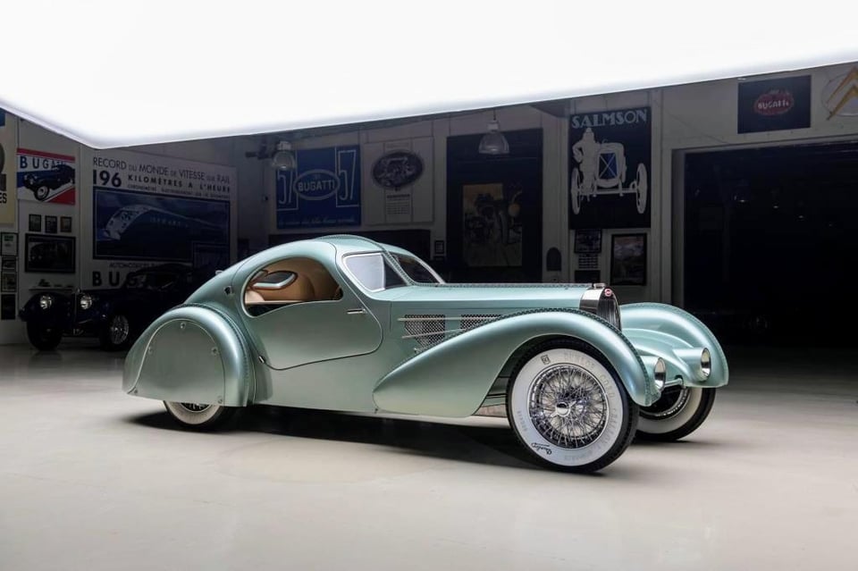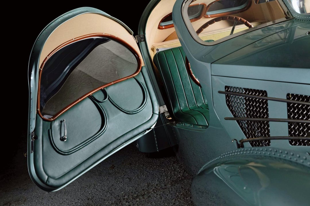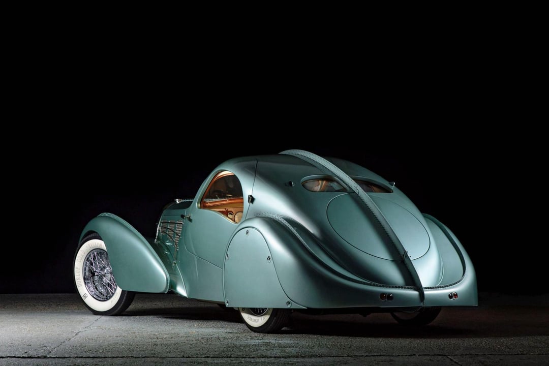 This Bugatti Aérolithe was hand Built out of Magnesium by The Guild of Automotive Restorers. The original Aérolithe was a One-off Bugatti Prototype for the Paris Show of 1935. Utilizing the earliest known type 57 Chassis #57104 the Guild Hand Built this new construction to exact scale as the original using only original and authentic Bugatti Components. This painstaking build was featured on their show Restoration Garage and was finished in the same method as the original with only era correct fabrications. From just 14 photographs the car was designed and built over a period of 7 years and survives today as an exact scaled version of the 1935 Bugatti Aérolithe.