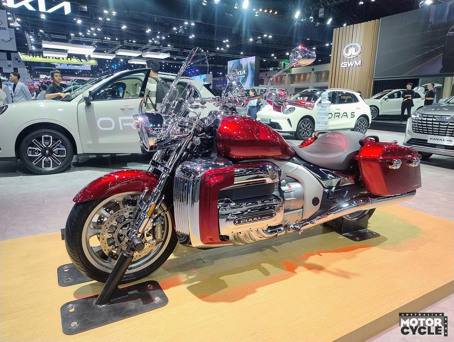 If there was a showstopping jawdropper, it would have to be the Great Wall Souo S2000 CL, a monster of a machine designed to rival Honda’s Gold Wing. Looking like something out of a Transformers movie, the machine is notable maybe not so much for its brutalist styling as for its 2.0-litre DOHC 32-valve flat-eight (boxer) engine. With an 8-speed dual-clutch transmission (DCT) featuring an electric reverse gear, the 450kg beast pumps out 113kW and has a stated top speed of 210km/h. Beauty, however, must remain in the eye of the beholder.