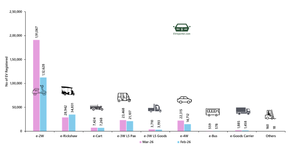 Category-wise Electric Vehicle Sales, Mar 2026 | India