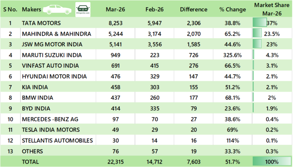 OEM wise E-4W Sales, Mar 2026