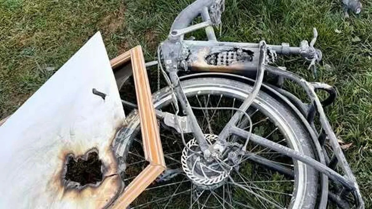 An electric bike’s battery sparked the fire, as seen in this photo from the scene.