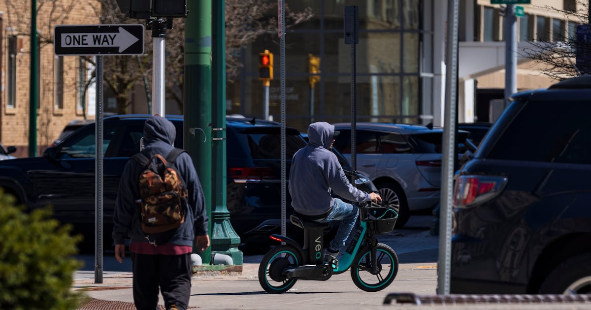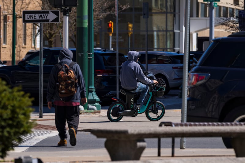 Alternative Transportation A man rides a VEO E-Bike on Wednesday, April 8, 2026, in downtown Syracuse, N.Y. (Chloe Trofatter | ctrofatter@syracuse.com) ((Chloe Trofatter | ctrofatter@syracuse.com)/(Chloe Trofatter | ctrofatter@syracuse.com)) Shared electric scooters and bikes