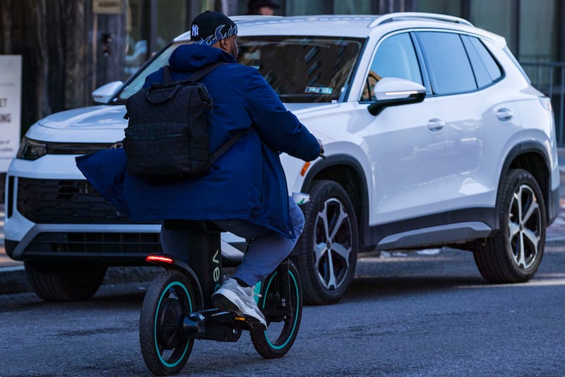 Alternative Transportation A man rides a VEO E-Bike on Wednesday, April 8, 2026, in downtown Syracuse, N.Y. (Chloe Trofatter | ctrofatter@syracuse.com) ((Chloe Trofatter | ctrofatter@syracuse.com)/(Chloe Trofatter | ctrofatter@syracuse.com))