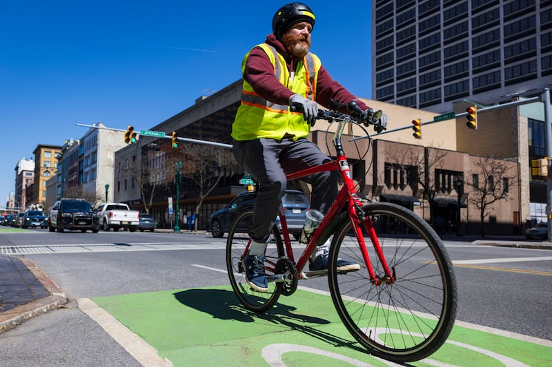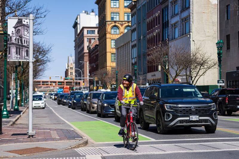 Alternative Transportation A man rides his bike on Wednesday, April 8, 2026, in downtown Syracuse, N.Y. (Chloe Trofatter | ctrofatter@syracuse.com) ((Chloe Trofatter | ctrofatter@syracuse.com)/(Chloe Trofatter | ctrofatter@syracuse.com))