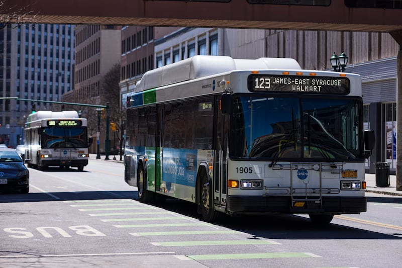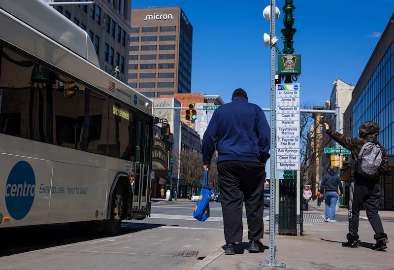 Alternative Transportation Someone gets on a Centro bus on Wednesday, April 8, 2026, in downtown Syracuse, N.Y. (Chloe Trofatter | ctrofatter@syracuse.com) ((Chloe Trofatter | ctrofatter@syracuse.com)/(Chloe Trofatter | ctrofatter@syracuse.com))