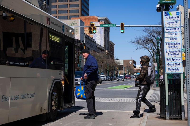 Alternative Transportation People board the Centro bus on Wednesday, April 8, 2026, in downtown Syracuse, N.Y. (Chloe Trofatter | ctrofatter@syracuse.com) ((Chloe Trofatter | ctrofatter@syracuse.com)/(Chloe Trofatter | ctrofatter@syracuse.com))