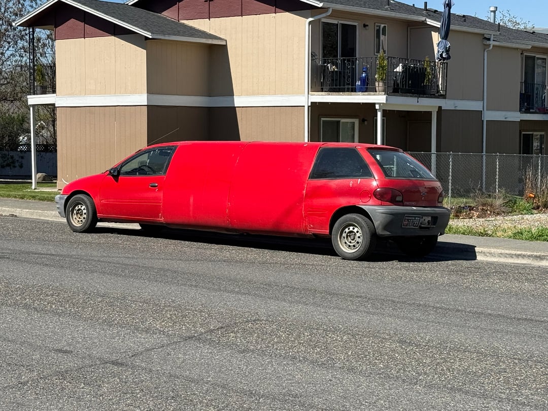 Geo Metro Limoby classless_classic Auto Artauto techAutomotive ArtTransport Technologyunusual vehiclesWeird WheelsRelated Posts Porsche 993 RWB [6016 x 4016] April 10, 2026 Geo Metro Limo, the official car of… April 10, 2026 Hotwheels Nissan Sentra April 10, 2026 Geo Metro Limo April 10, 2026 [Buick Grand National] spotted in the wild April 9, 2026 [Honda S800] in Gion April 9, 2026