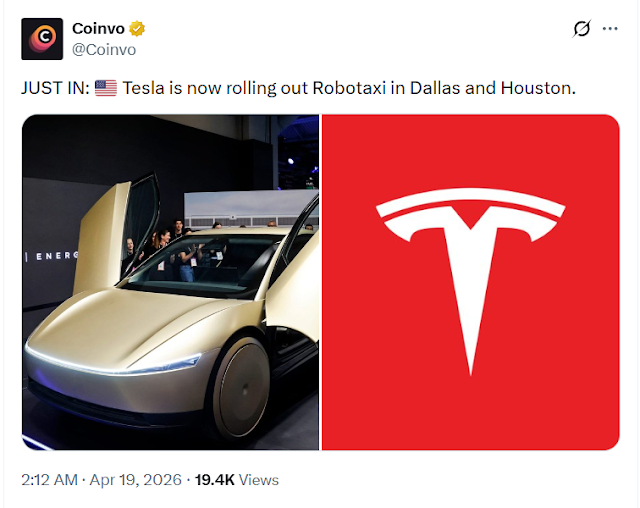 Tesla is reportedly expanding its autonomous ride-hailing ambitions, rolling out its Robotaxi service in the cities of Dallas and Houston. The development, which has circulated widely and was referenced in a post on X by Coinvo, marks a significant step in the company’s long-term strategy to redefine transportation through self-driving technology.