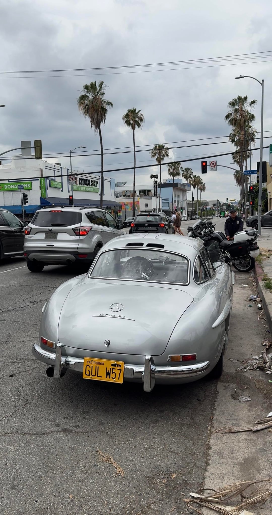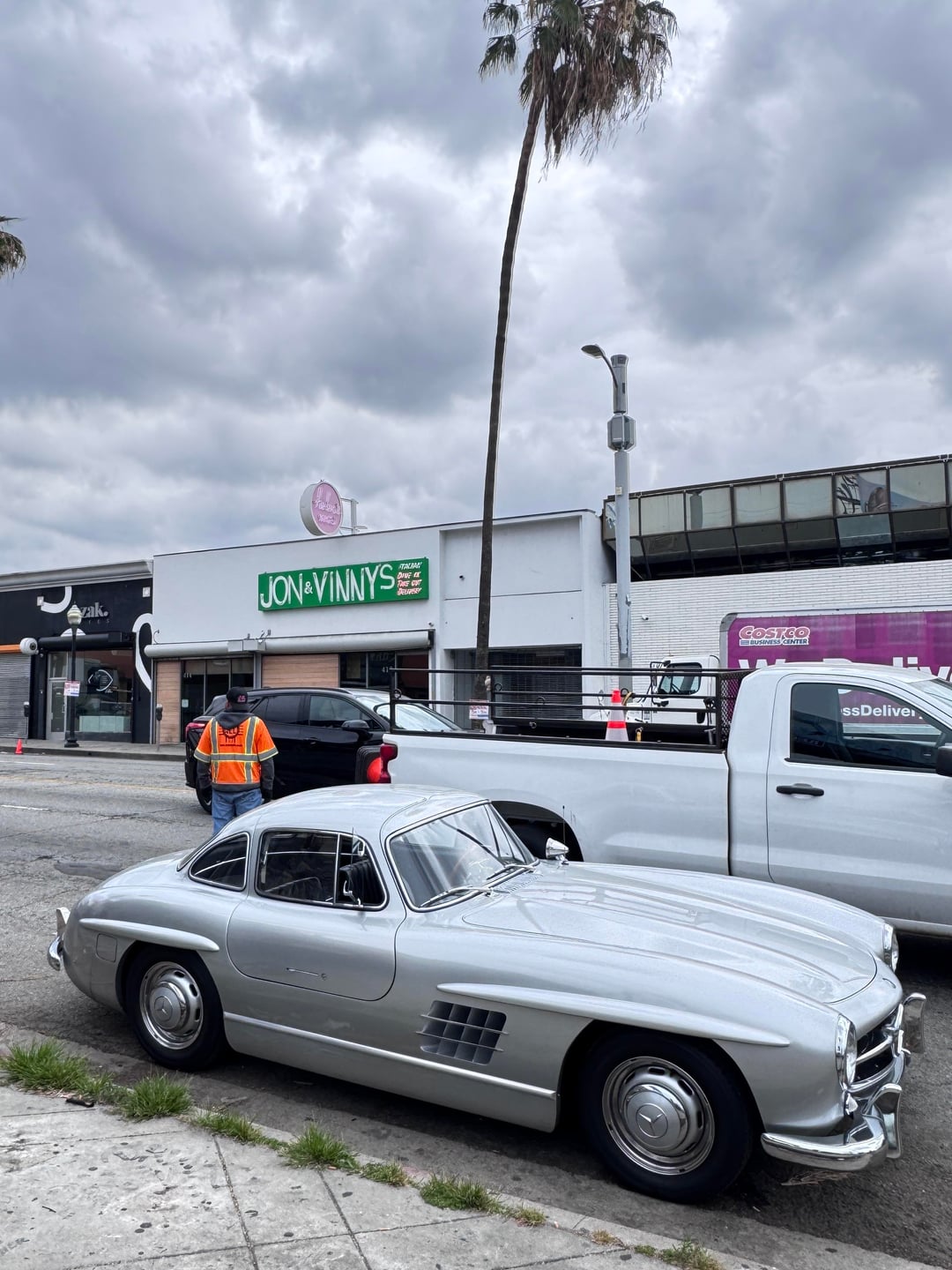 When I stopped, I learned that they were currently using this car for the tv show called The Studio. They were out on location filming at Canters Deli. The owner of the car was the only one that can drive it so they used him in the tv show as a valet driver.