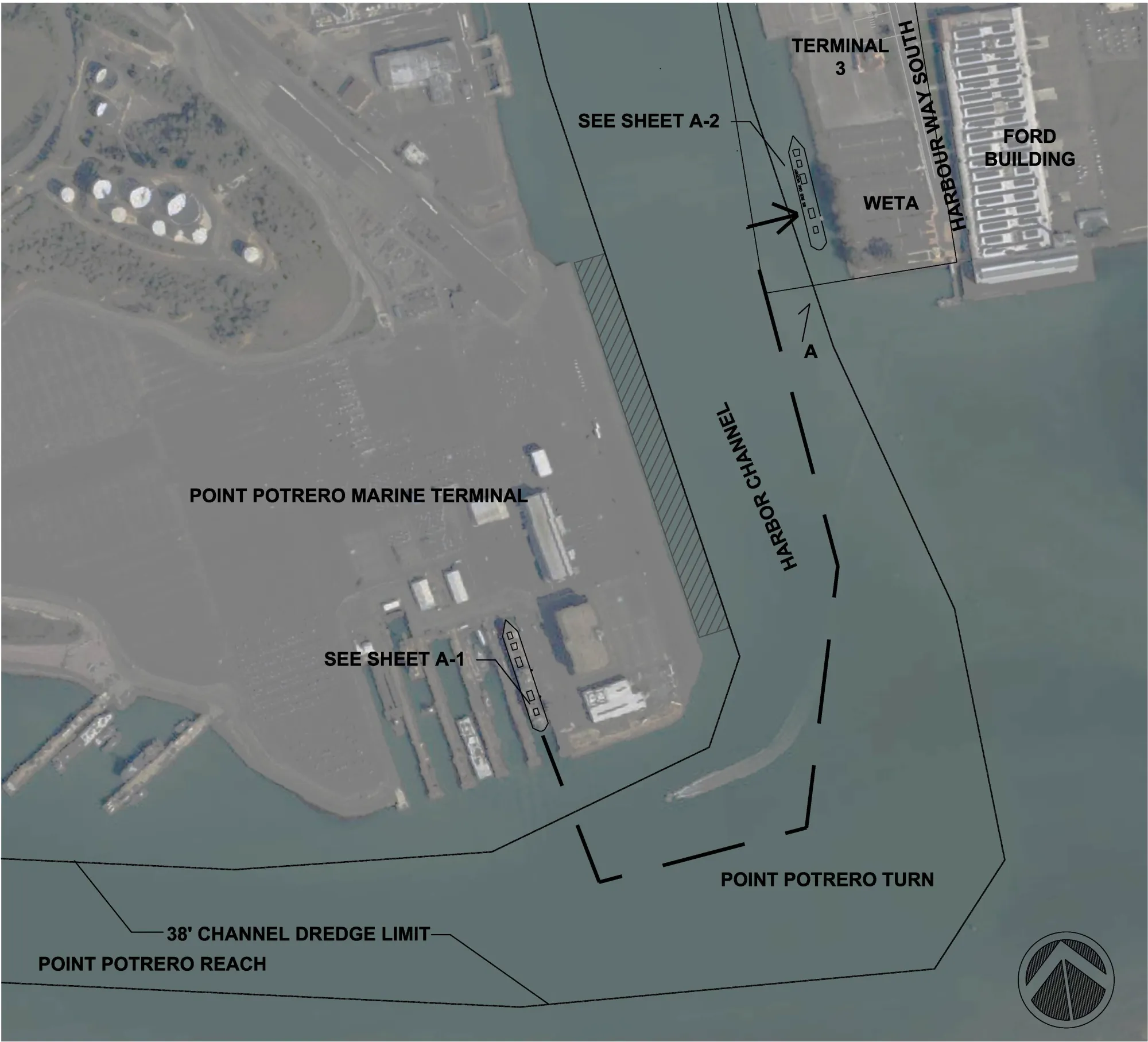 A concept plan included in the agenda packet shows the ship crossing the Richmond Harbor Channel to a new berth along Harbour Way South, directly alongside the WETA ferry terminal lot near the Ford Building, home of the Craneway Pavilion, whose own future remains unresolved after the council voted last week to reject a donation agreement with leaseholder Eddie Orton. Orton told the council he intends to transfer the leasehold to an unnamed marine-use organization.